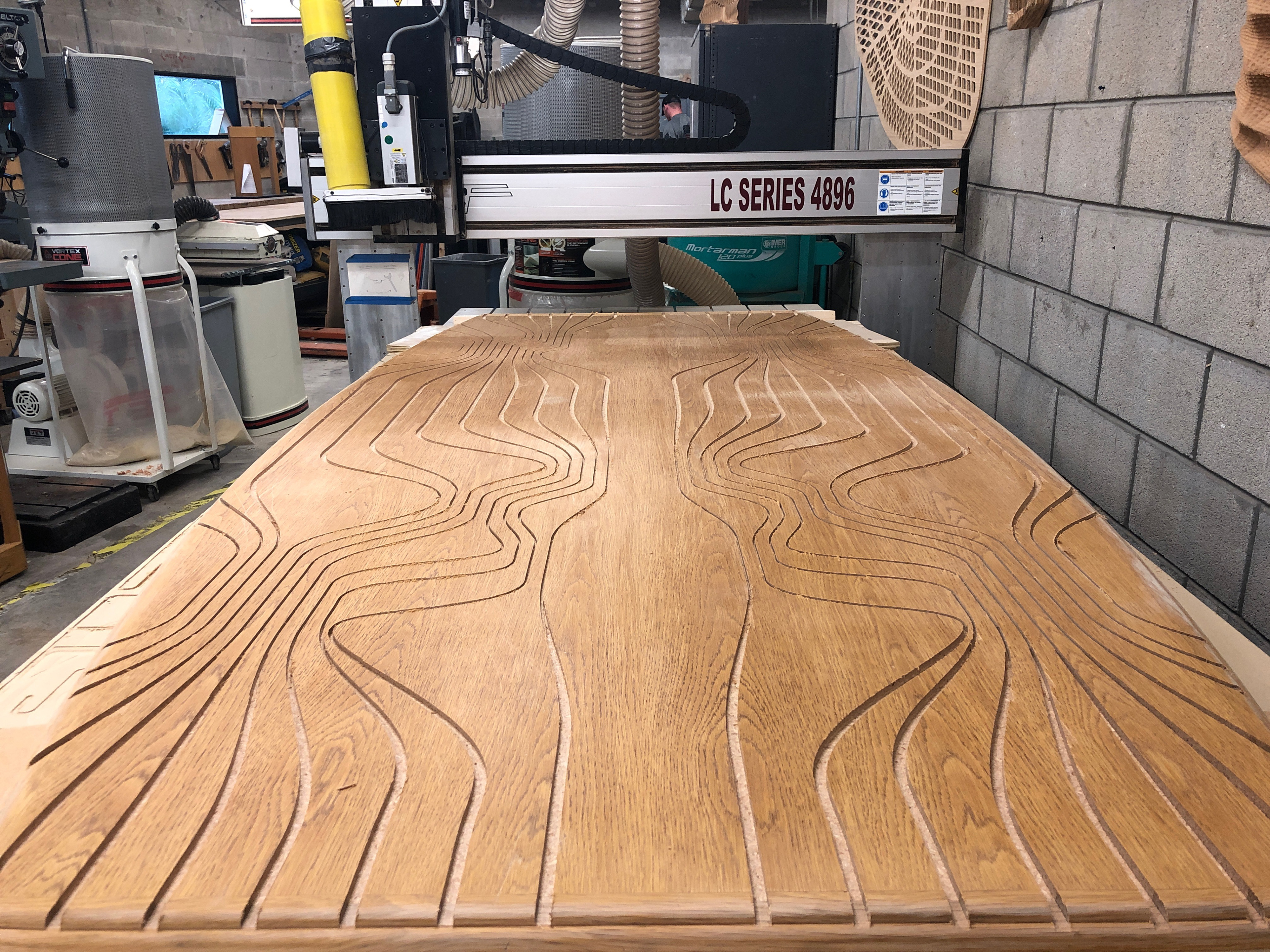 Amid the mix, we found a worn, faux-wood table and saw potential for transformation. Using CNC technology, I proposed engraving an intricate pattern to elevate its design. After experimenting with Grasshopper scripts, I crafted a series of patterns, and we began reshaping the table, starting with detaching the legs and carving the selected design with the CNC.